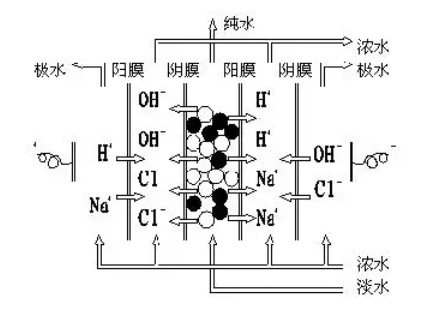 離子交換膜技術(shù)和離子電遷移技術(shù)相結(jié)合的純水制造技術(shù)。它巧妙的將電滲析和離子交換技術(shù)相結(jié)合,利用兩端電極高壓使水中帶電離子移動,并配合離子交換樹脂及選擇性樹脂膜以加速離子移動去除。在edi除鹽過程中,離子在電場作用下通過離子交換膜被清除。同時(shí),水分子在電場作用下產(chǎn)生氫離子和氫氧根離子,這些離子對離子交換樹脂進(jìn)行連續(xù)再生,以使離子交換樹脂保持最佳狀態(tài)。